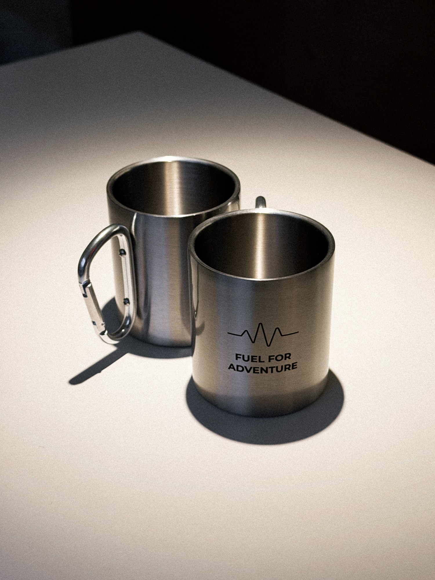 Нержавеющая сталь. Двойные стенки задерживают изменение температуры напитка, а также делают кружку более прочной.