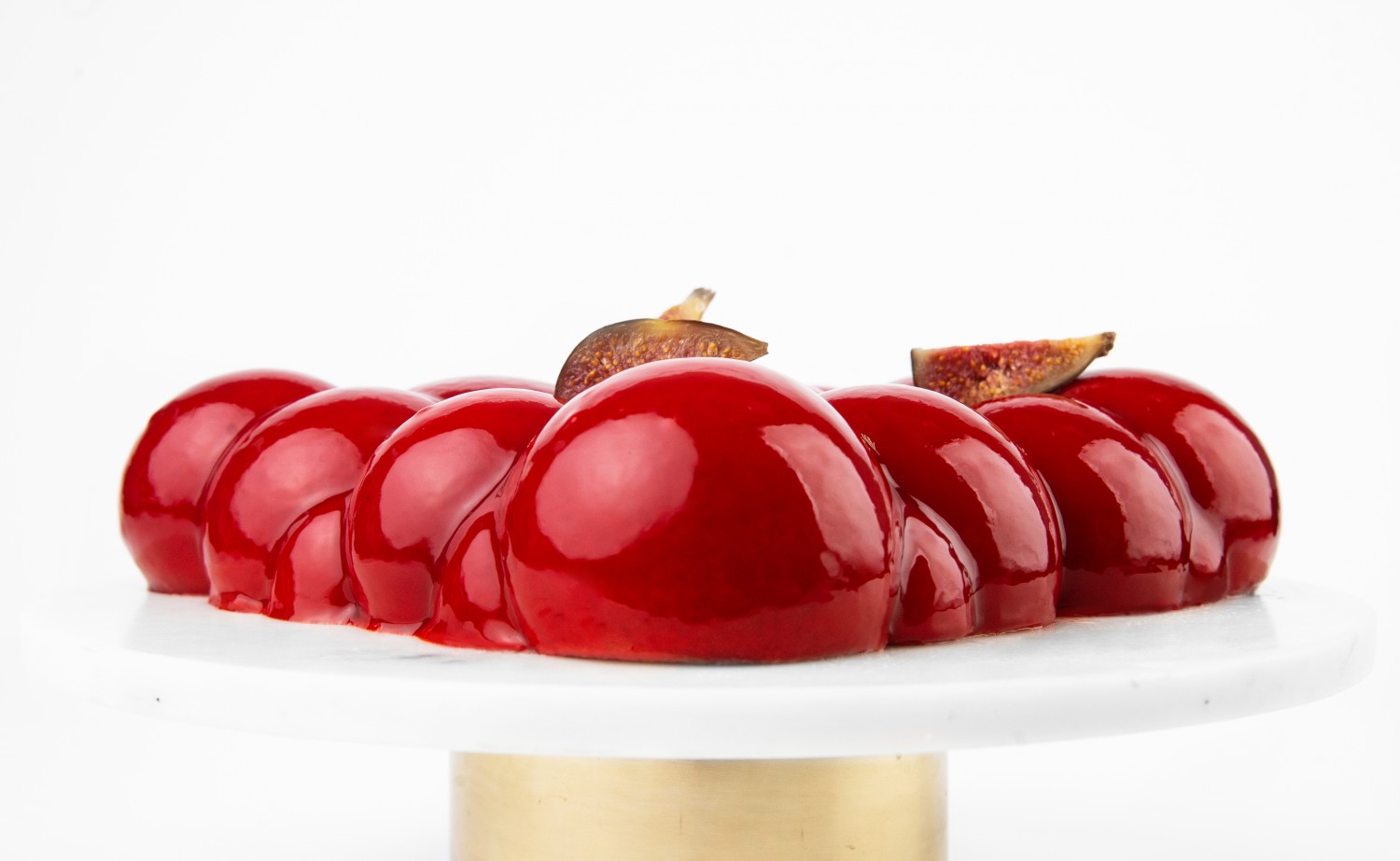 Мусс из инжира, клубничный мармелад и малиновый конфитюр на шоколадном бисквите.