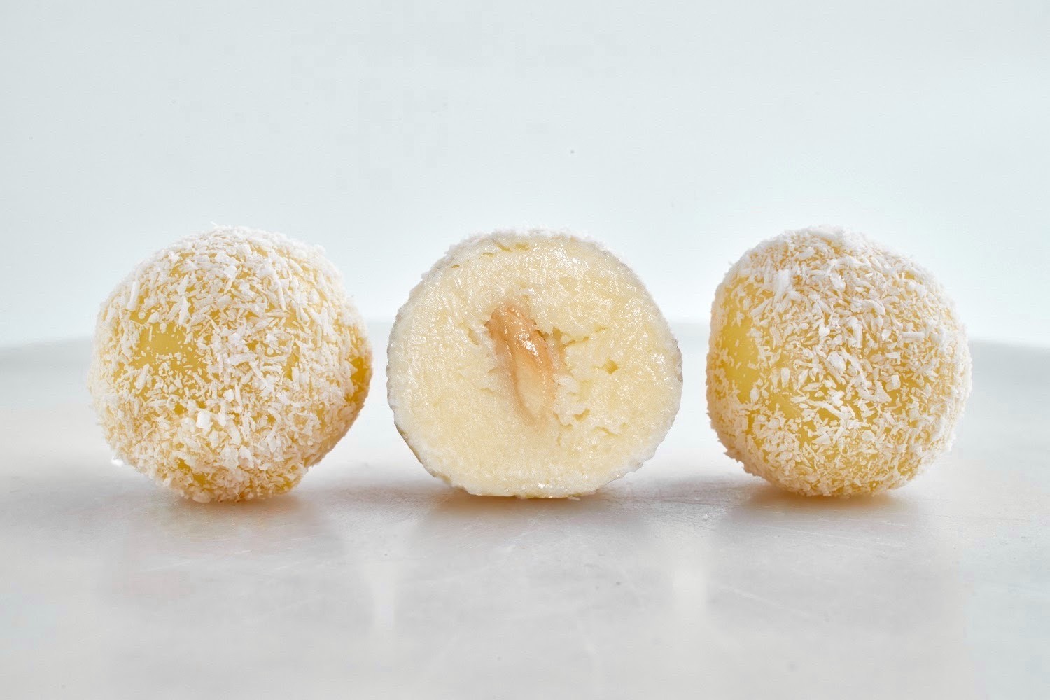 Белый шоколад, кокосовое молоко, кокосовая стружка, миндаль